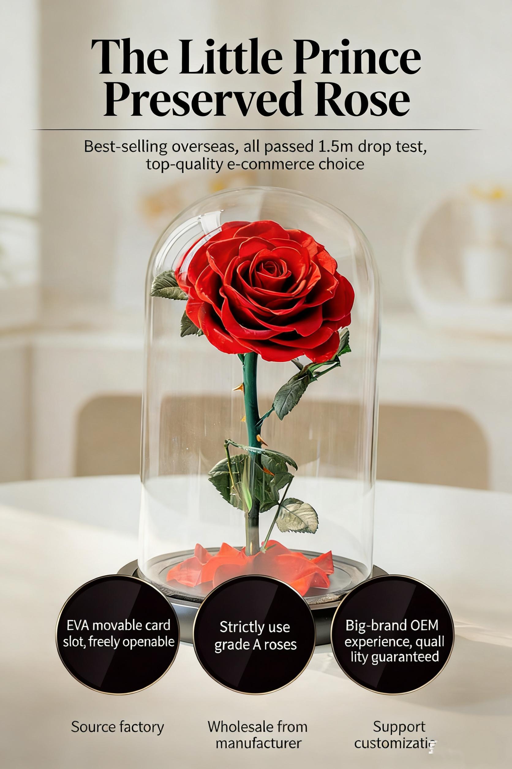 Rosong New Year Preserved Real Rose in Glass Little Prince Flower for Mom Grandma Wife Eternal Flower Gift Idea for Valentine's Day